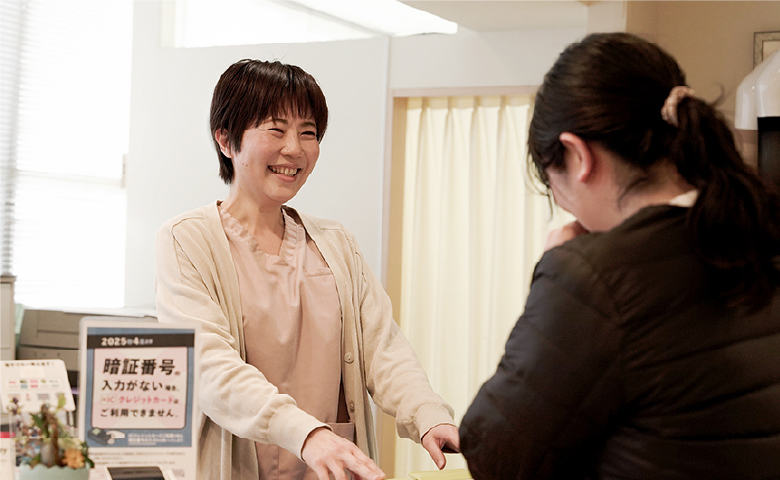 さらに、当クリニックは職種間の連携がとても特徴的です。スタッフ全員が診療状況を見ながら、手がたりていない時は職種関係なくサポートします。