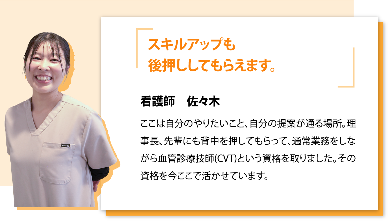 スキルアップするのための研修や、資格取得など、現場に役立つものであればサポートしています。