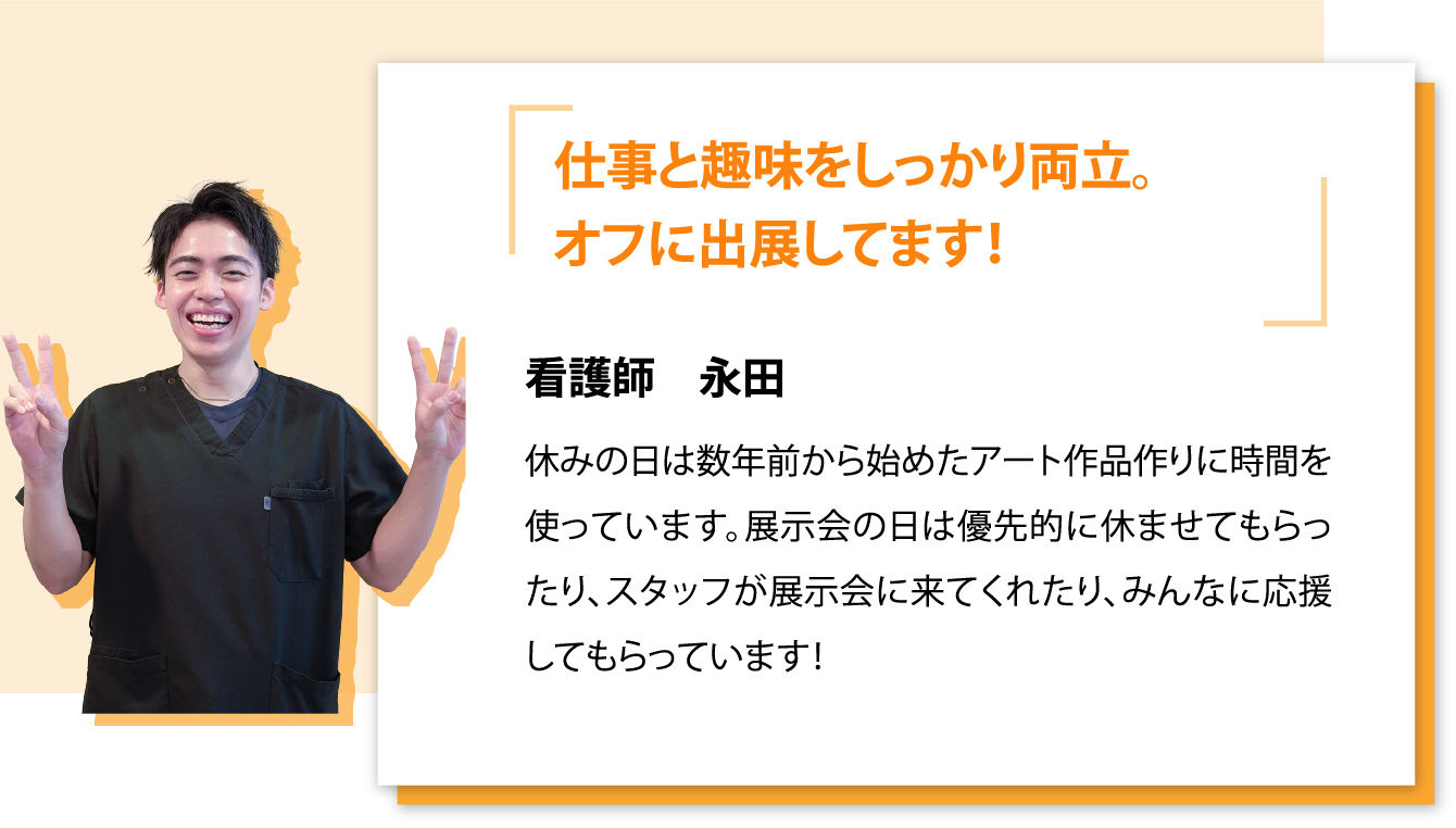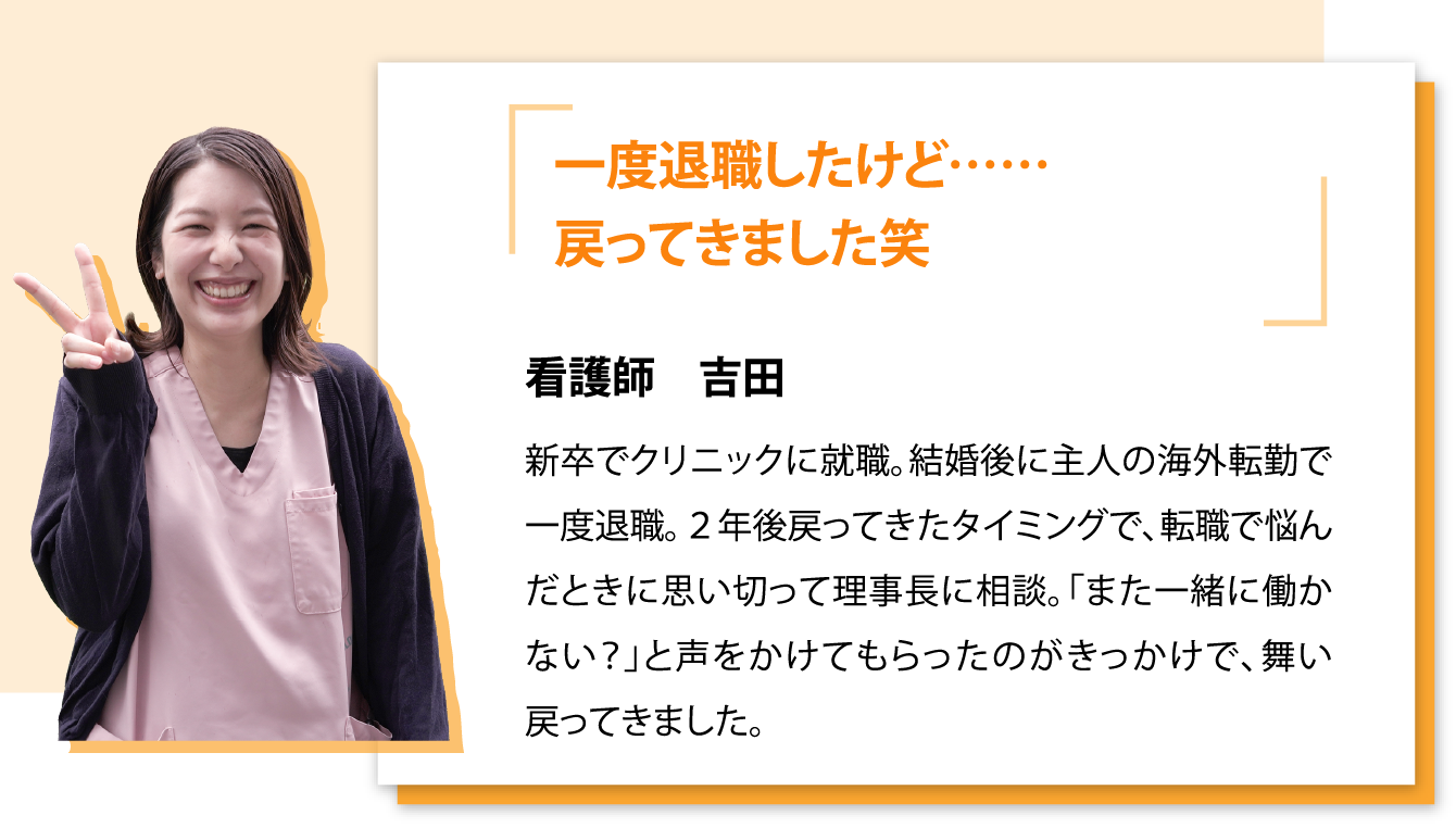 場所が違えば患者様も違うから、気持ちをリフレッシュさせながら仕事をすることができます。