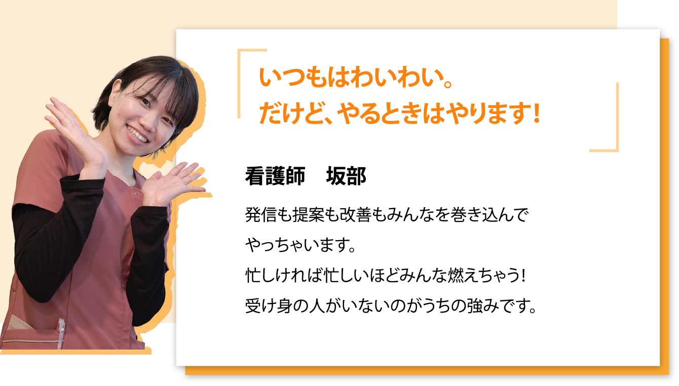 医師も含めて全員が1つのチーム。常に向上心をもってチームのレベルを