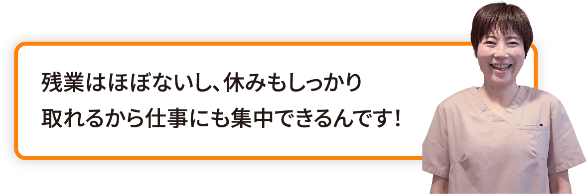 診療内容によっては残業の可能性がある診療日もありますが、その日は予測ができるので、